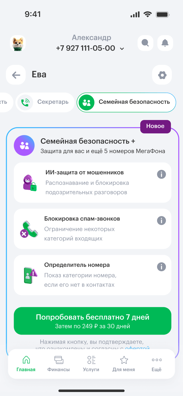 - 5Готово! Теперь у вас и ваших близких работает ИИ‑защита от мошенников, блокировка спам‑звонков и СМС‑рекламы, а также определитель номера.